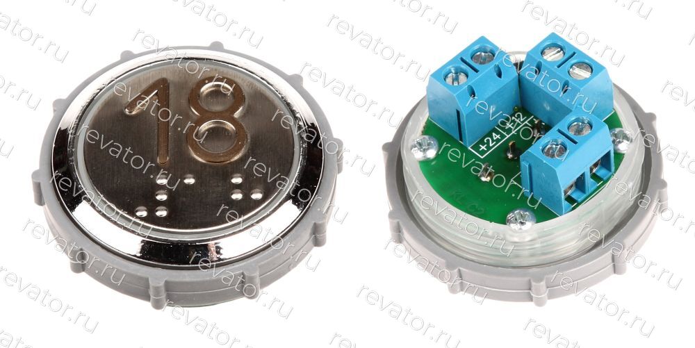 Модуль кнопочный с чернением красная подсветка шрифт Брайля "18" Схема №1 ВК-33-5Б